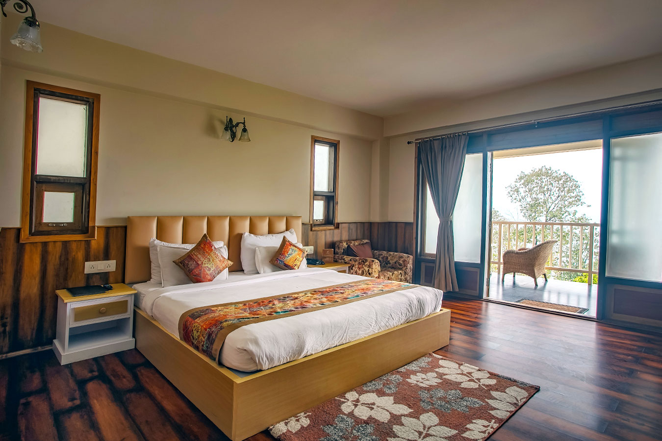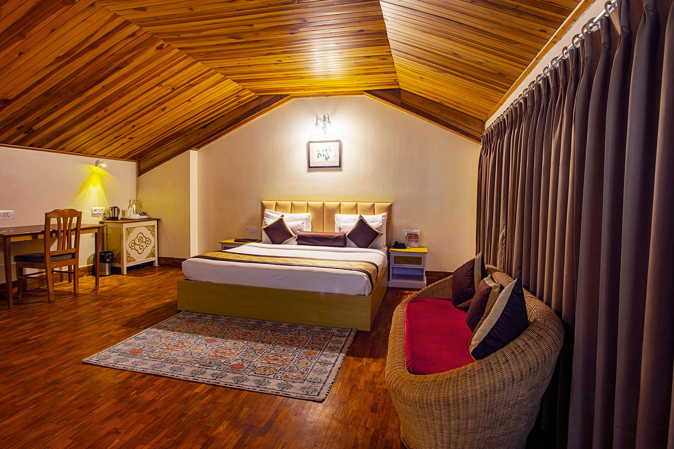 Covering 500 sq. ft of area, Premium Cottage are the best choices for families with three or more members. Guests can have a marvelous window view of mount Kanchenjunga. Furnished with beautiful paint, interiors, and wall hangings, the Premium Cottage are featured with a plush King Bed.